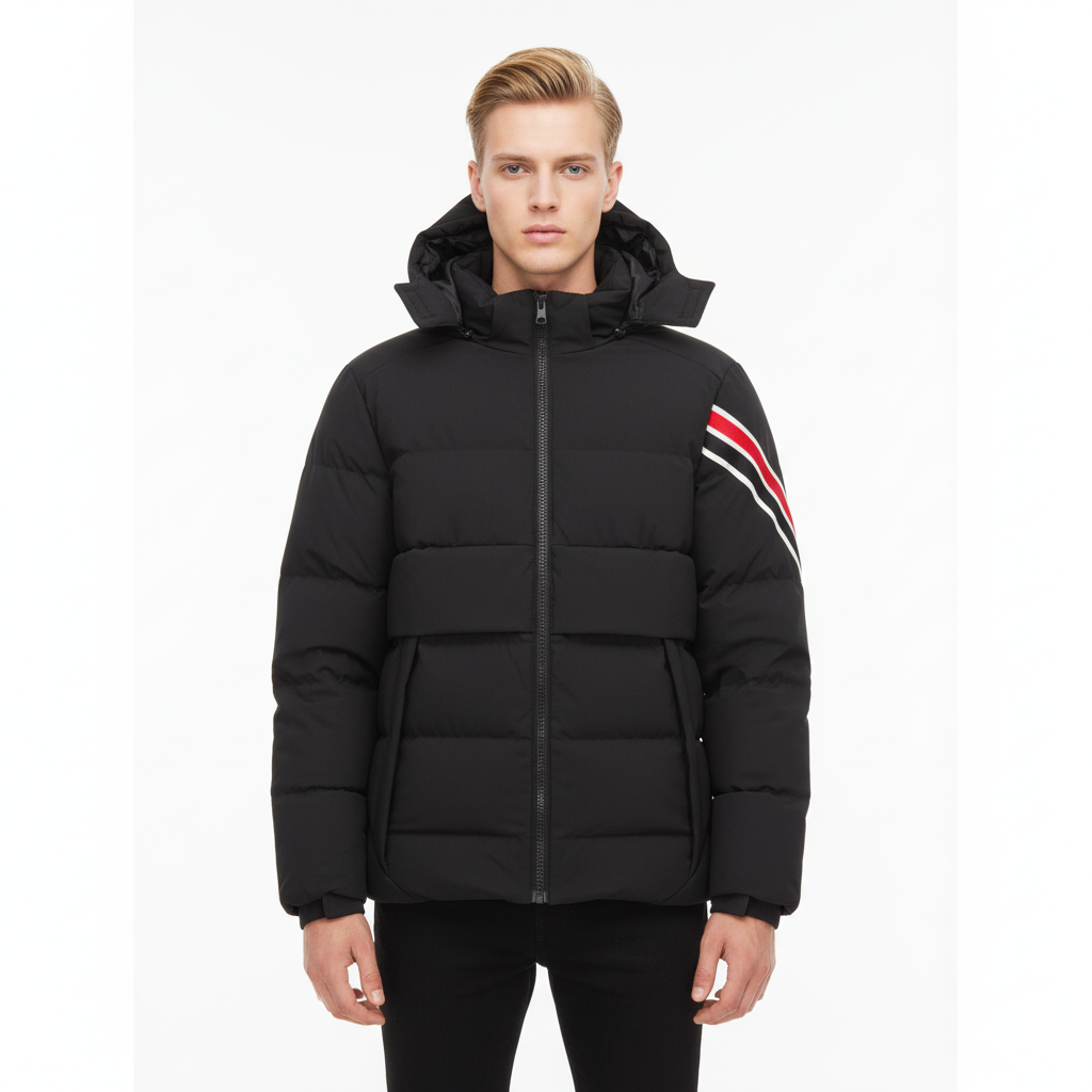 This jacket includes side pockets for convenience and a bold striped detail on the sleeve, adding a sporty edge to the look. Paired effortlessly with jeans, joggers, or casual trousers, it’s perfect for winter outings, weekend wear, or urban street style.
